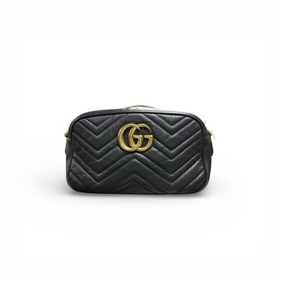 GUCCI BLACK MARMONT MINI CAMERA BAG (PRELOVED) C CONDITION